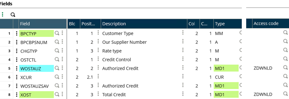 When considering the Export functionality, you need to realize that it is based on extracting the information stored in the fields defined in the relevant X3 Screens. To do this, we use a piece of built-in functionality related to Access Codes: