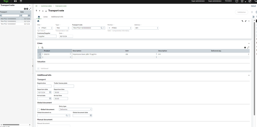 The Transport Note feature in Sage X3 tracks goods that are shipped and/or delivered but do not include products that are part of the core business.