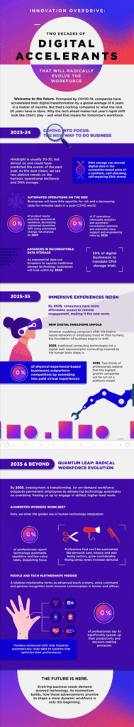 Welcome to the future, prompted by COVID-19, and driven by global disruption,  companies have accelerated their digital transformation by a global average of 6 years in a matter of months.  But that’s nothing compared to what the next 20 years have in store.