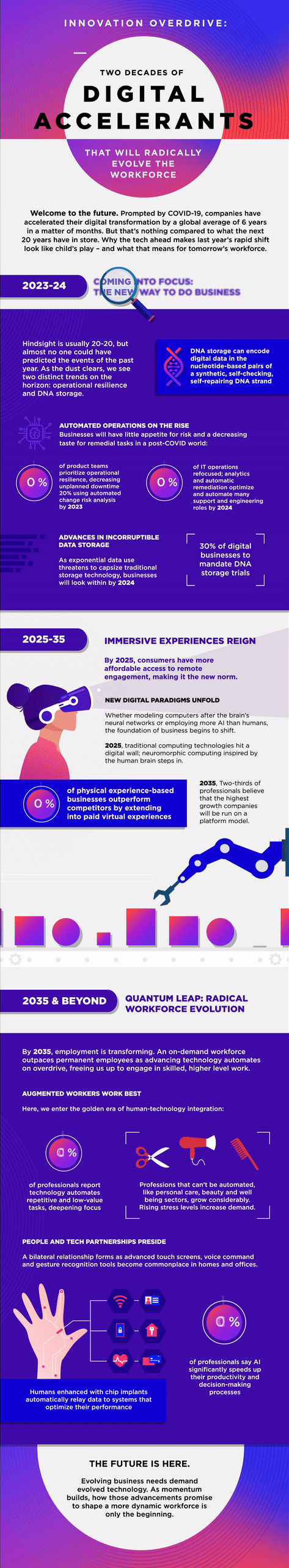 Rapid transformation has been set in motion for decades to come. What do experts predict our technology will look like in 20 years and what does it mean for our workforce?  Have a look at the gifographic below to see.