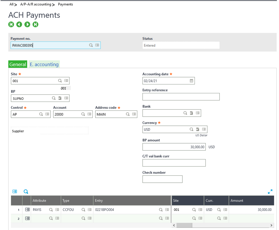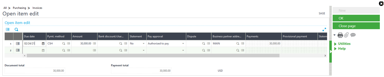 - We added a prepay amount to be paid – we entered the full amount ($200k) of the new PO (Utilities, Prepayments)