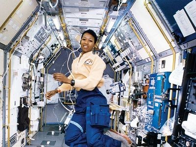 After working with the Peace Corps, Jemison opened a private practice as a doctor. However, once Sally Ride became the first American woman in space in 1983, Jemison decided to apply to the astronaut program at NASA. She applied in 1985, but after the Space Shuttle Challenger exploded in 1986, NASA took a break from accepting new people. However, Jemison applied again in 1987 and was one of the 15 people chosen out of over 2,000 applications. She was selected for NASA Astronaut Group 12, which was the first group chosen after the Challenger explosion. After being selected, Jemison trained with NASA and worked on projects at the Kennedy Space Center in Florida and the Shuttle Avionics Integration Laboratory. She received her first mission on September 28, 1989 when she was selected to join the STS-47 crew as a Mission Specialist. On September 12, 1992 Jemison and six other astronauts went into space on the space shuttle Endeavor. This voyage made Jemison the first African American woman in space. The team made 127 orbits around the Earth and returned to the Kennedy Space Center in Florida on September 20, 1992.
