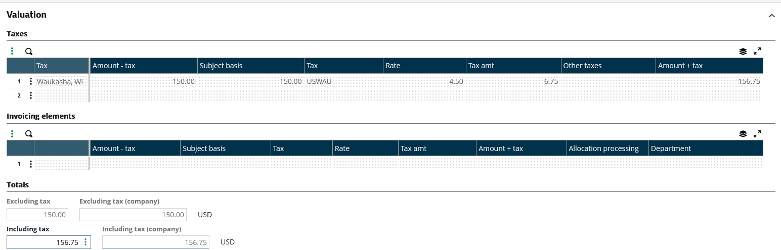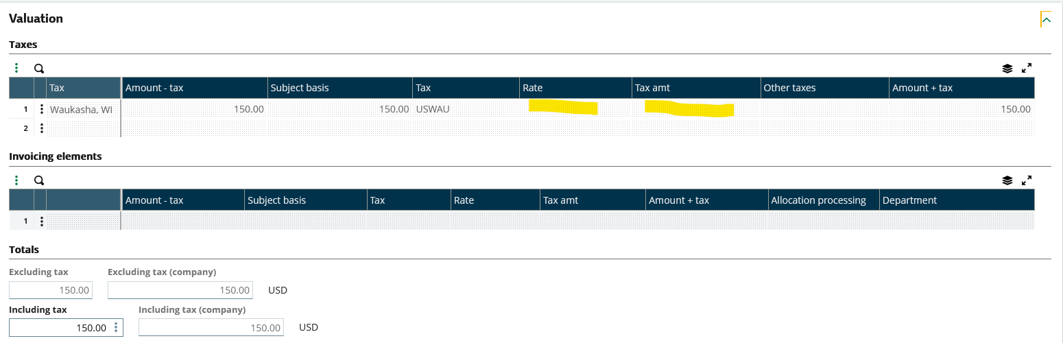 Note that the Rate and Tax Amount fields now are empty: