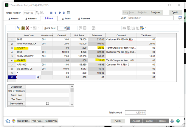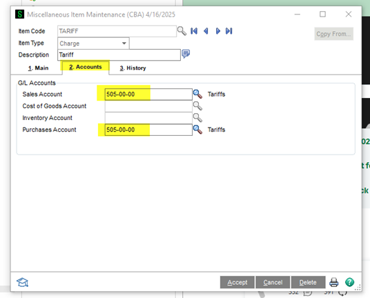 If your business requires more accuracy or detail in tracking tariffs, consider using Landed Costs, which provide a more robust and precise solution within Sage 100. Please contact us for more information.