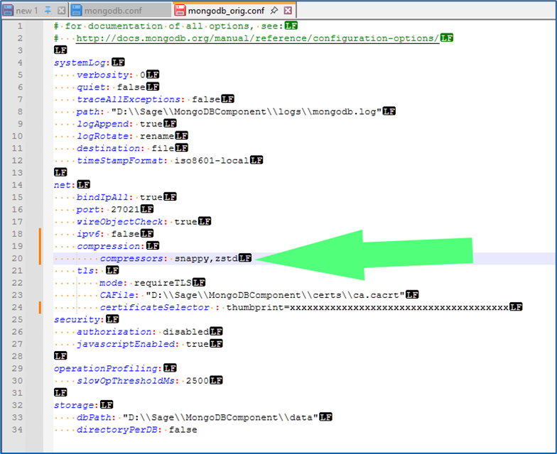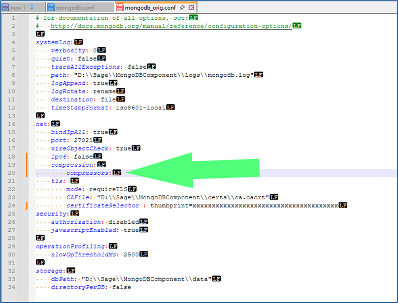 - Use this to disable all compression by MongoDB. This is Sage’s suggestion for all instances, and Net At Work’s recommendation if your MongoDB instance is on the same server as your Syracuse webhost component, and no other Syracuse webhosts are part of the solution