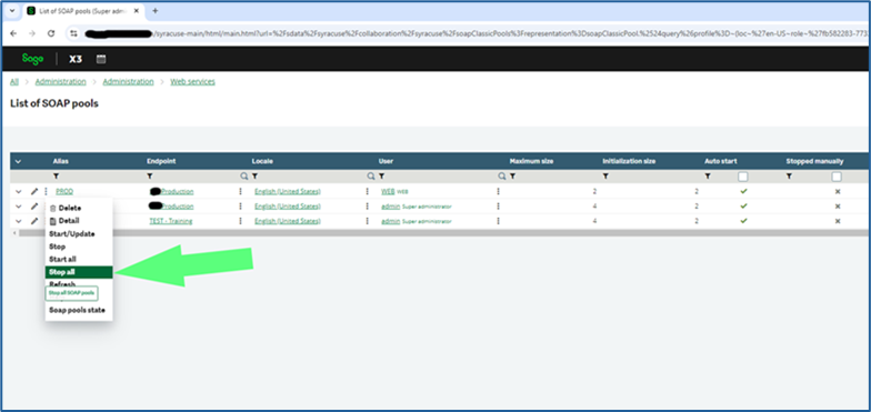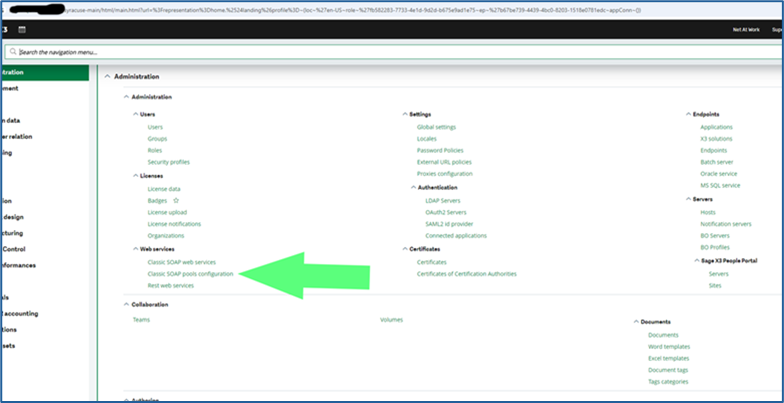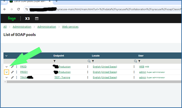 - X3 -> Administration -> Administration -> Web services -> Classic SOAP pools Configuration