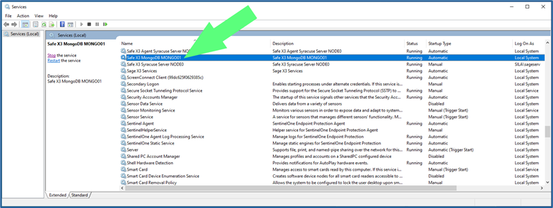 - Stop the service named “Safe X3 MongoDB MONGOxx”