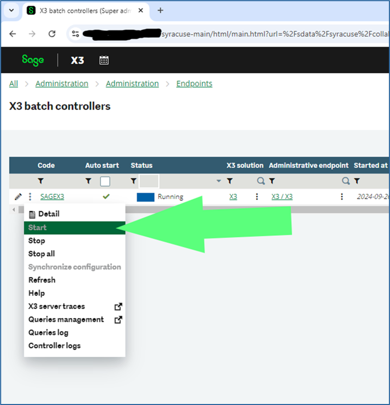 - Also restart Sage X3 Services if present after all Syracuse services have been restarted