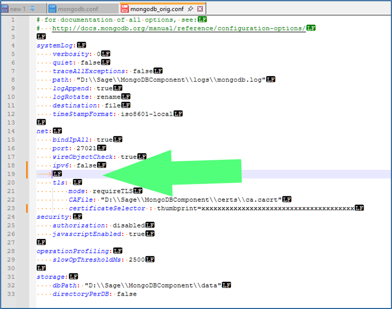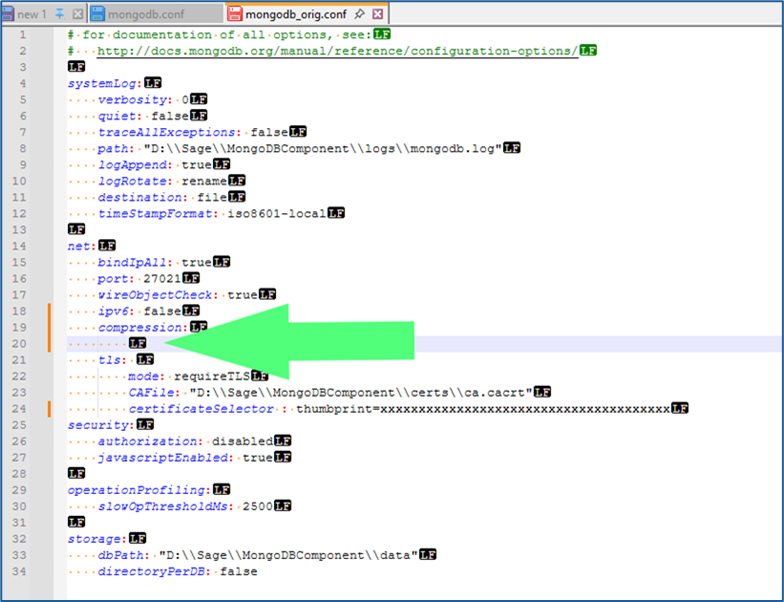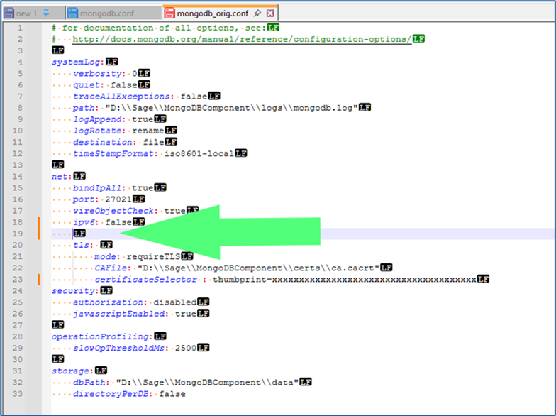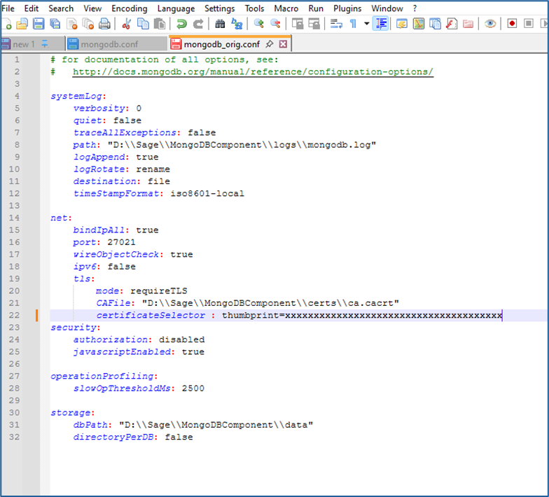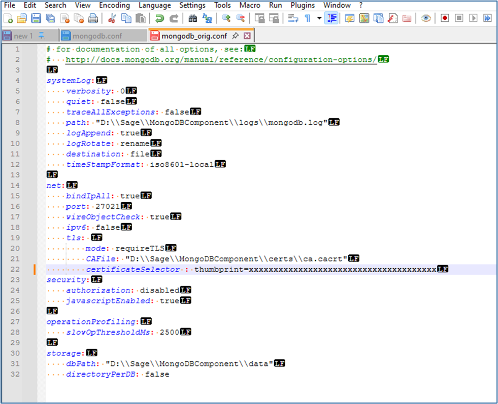 - Open the “mongodb.conf” file in Notepad++