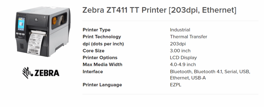 Zebra’s ZT411 Series printers address a broad array of applications throughout manufacturing, transportation and logistics, retail and more: