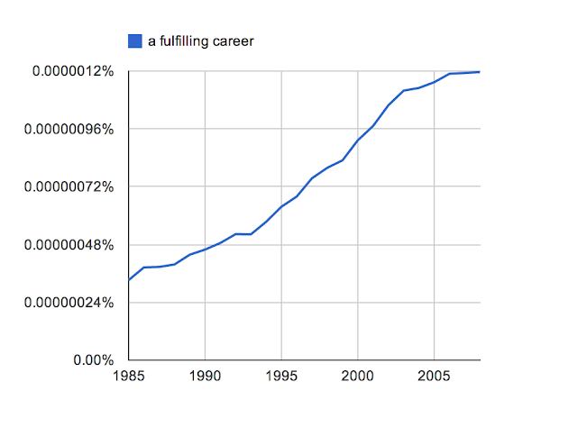 A few years ago, I stumbled on a blog by Tim Urban that broke down the generational evolution of the perception of happiness. Using Google’s Ngram Viewer, which shows the popularity of a phrase over different time periods, he measures the changes over time of two different phrases: “a secure career” and “a fulfilling career”: