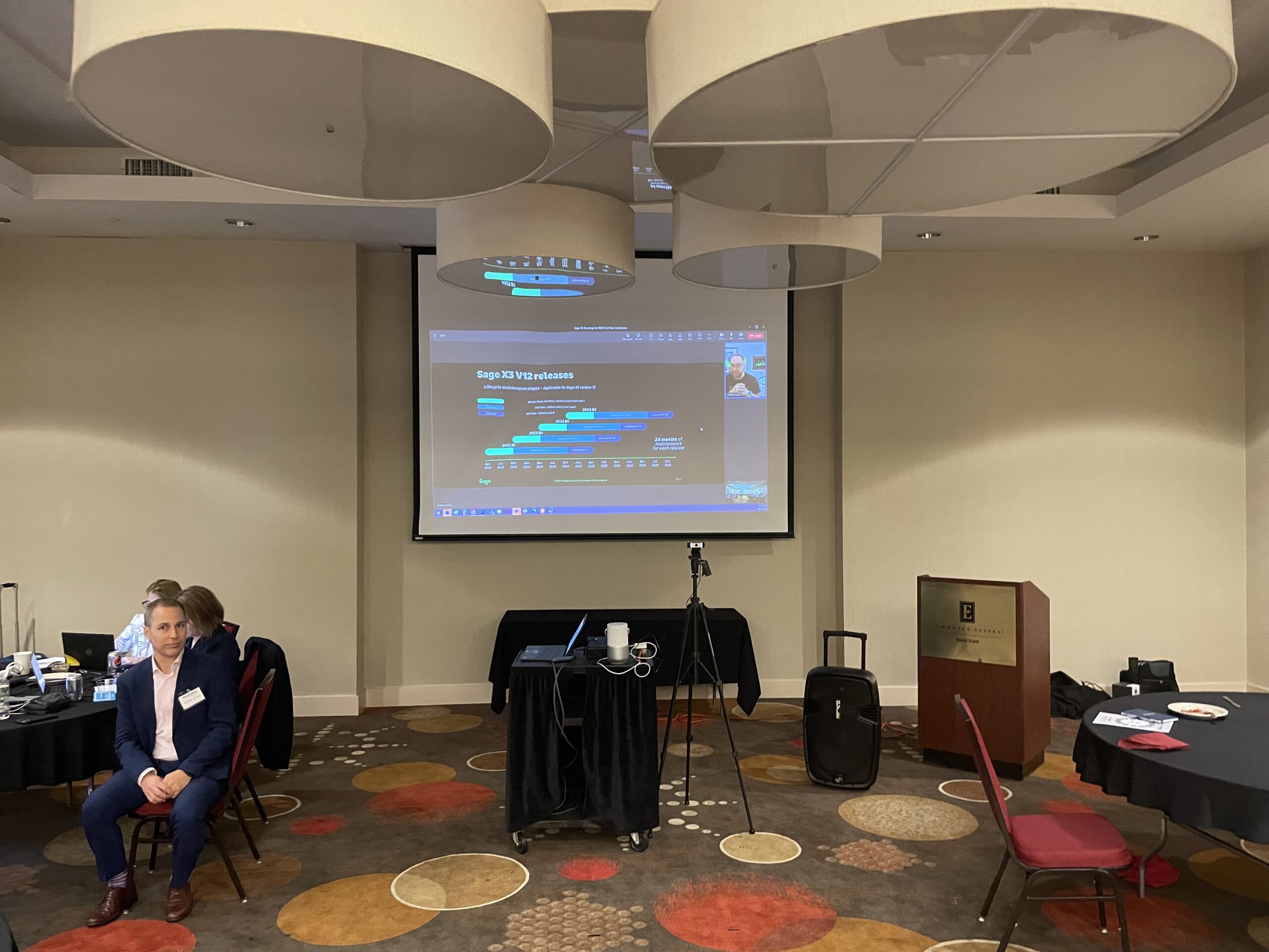 The End User Group consisted of sessions about connected Independent Software Vendors (ISVs), Net at Work modules (X3 extensions), tips and tricks, and a roadmap presentation from Rob Sinfield, Global Head of Product, Sage X3 at Sage.