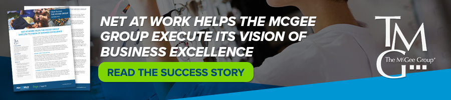 Net at Work’s involvement with The McGee Group extends beyond the ERP. When confronted with performance issues, Couzins recalls a time when the source of the problem was elusive: “Net at Work investigated and correctly identified an issue with our hardware, which our managed services provider had missed.”