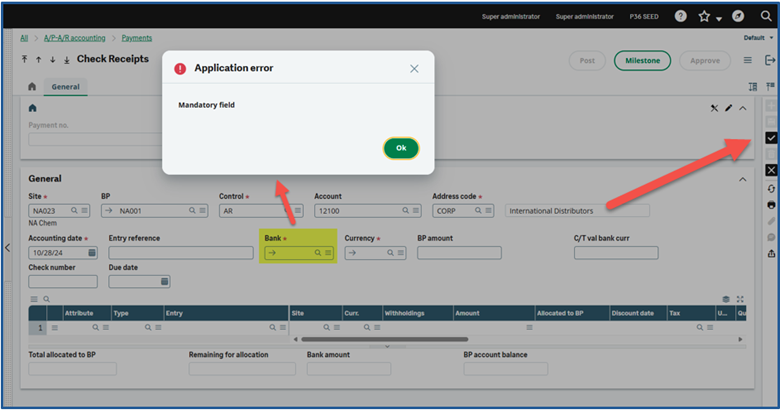 When processing payments in Sage X3, maintaining accurate and complete data is essential. Even one small oversight, such as leaving the Bank field blank, can lead to incomplete records, reconciliation challenges, or reporting discrepancies later on. Fortunately, Sage X3 allows you to define which fields are required, ensuring that important details are captured before posting any transaction.