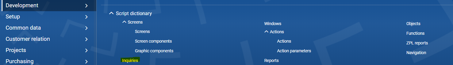 Finally, if you are a superuser of the system and you need to understand which screen code is used by default on an inquiry, you will need to see it in the development section: