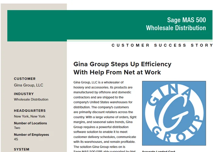Gina Group Steps Up Efficiency With Help From Net at Work