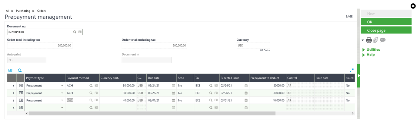 Creating Multiple Prepayments for Purchase Orders in Sage X3
