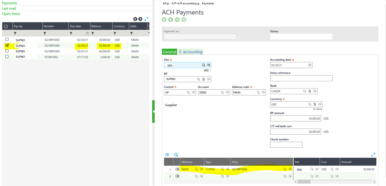 7. Select the second prepayment of the list (once again, created at the 1st moment, when the PO was created and no prepayments processed)