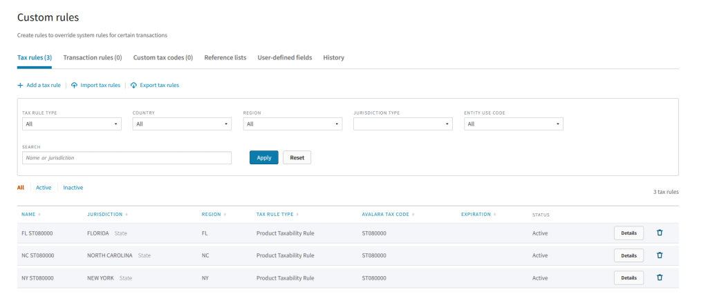 • Remember to create a rule for each jurisdiction that you want it applied.