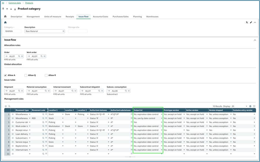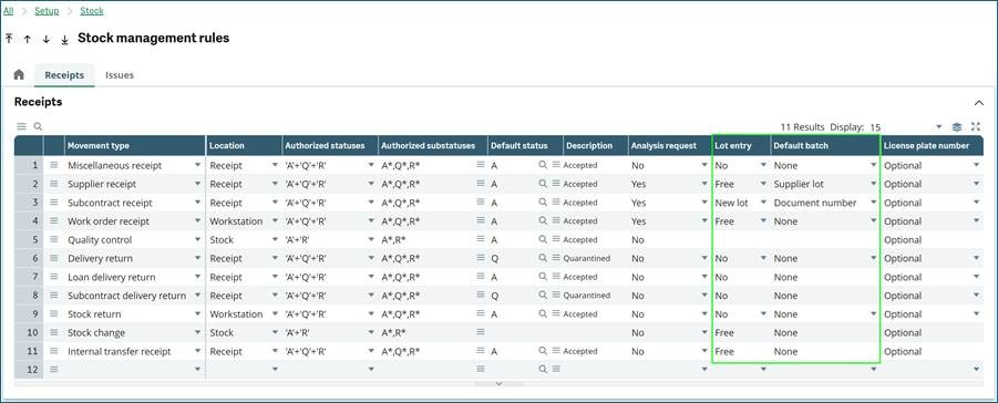 - Stock management rules and product category specific receipt rules can add another layer of control to the entry of the lot at receipt