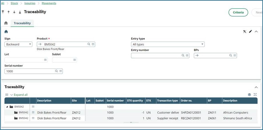 Now, let’s explore the core components of traceability in Sage X3 listed below: