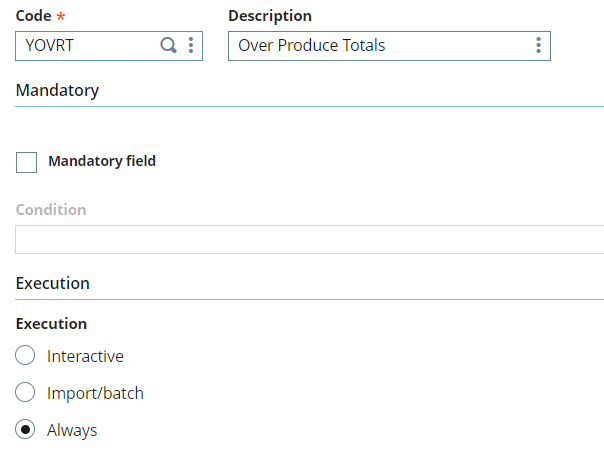 - VALEUR <= ([F:MFG]EXTQTY(nolign-1)*1.05) – [F:MFG]CPLQTY(nolign-1)