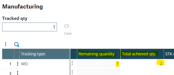 Enter Production Tracking. When entering the Tracked Qty: