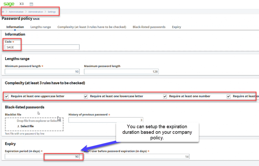 How to Configure Strong Password Policies in Sage X3 V12 P16