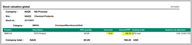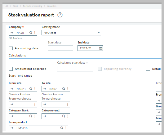 - When you run the stock valuation report after a value change using the FIFO basis grid, the stock valuation report will look for any value change records where CSTCOU_0 is equal to the CSTCOU_0 of the receipt.