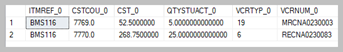 Listed below are the STOJOU, STOCOST, STOMVECOST tables.