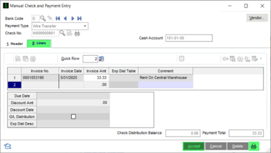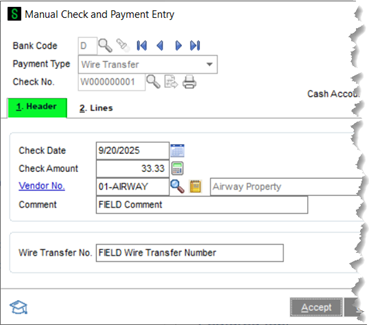 Recording Vendor Online, Automatic or Wire Transfer Payments in Sage 100