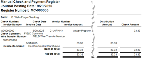 10. Click the Printer icon to update the Manual Check and Payment Register.