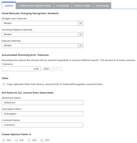 - Amortized amounts are “recognized” and posted back to G/L upon maturity, in predefined portions, according to the amortization terms defined in Options