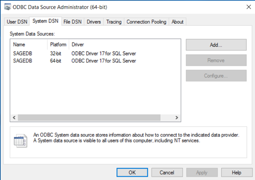 CR 2020 is 64-bit and now uses only 64-bit data connections. If you currently use Crystal Reports to design new reports or update/customize existing Sage reports and upgrade to CR 2020 you will need a 64-bit ODBC connection named to match your 32-bit ODBC connection.
