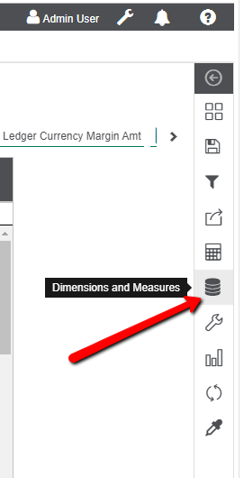 - Click on the ‘Dimensions and Measures’ Icon on the right panel bar