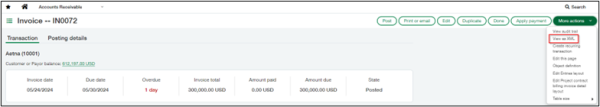 When viewing an invoice, you can select More Actions and click on View as XML.