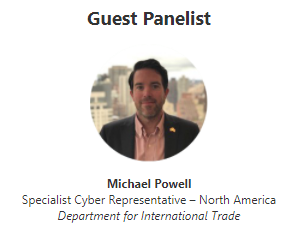 Watch this on-demand webinar where we host Michael Powell, Specialist Cyber Representative – North America Department for International Trade, for a discussion on these timely topics and key takeaways: