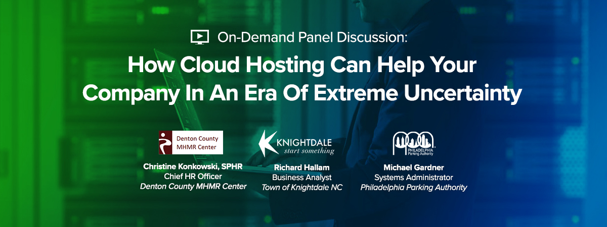 Have you considered hosting your applications in the cloud? Before you say no, take this opportunity to listen to those who have and the benefits they have experienced. Watch this on-demand virtual panel discussion to learn about the benefits of cloud hosting and how it helps organizations prepare for the “new normal.”