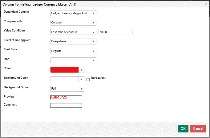 - Level of rule applied allows the user to select the level where the formatting will be applied,
