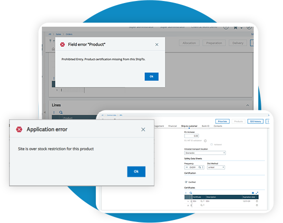 • Managing purchase orders or blocking receipt of a restricted product