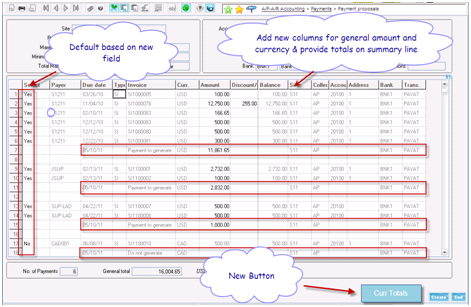 The control screen will be extended so that it displays the proposed payments/invoices in the general currency as well as the payment currency.