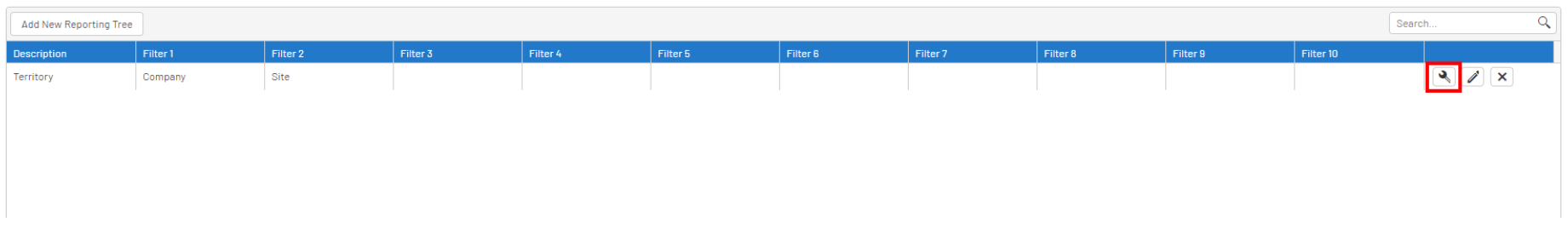 - In the Reporting Tree list, click on the wrench icon of the Reporting Tree you want to apply Filters to.