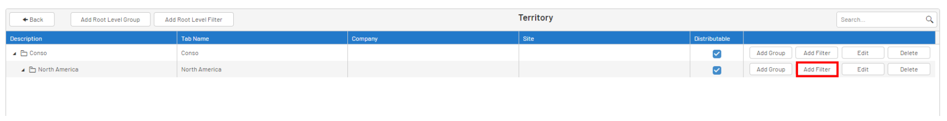 - Click on Add Root Level Group to start defining the hierarchy of your Filters: