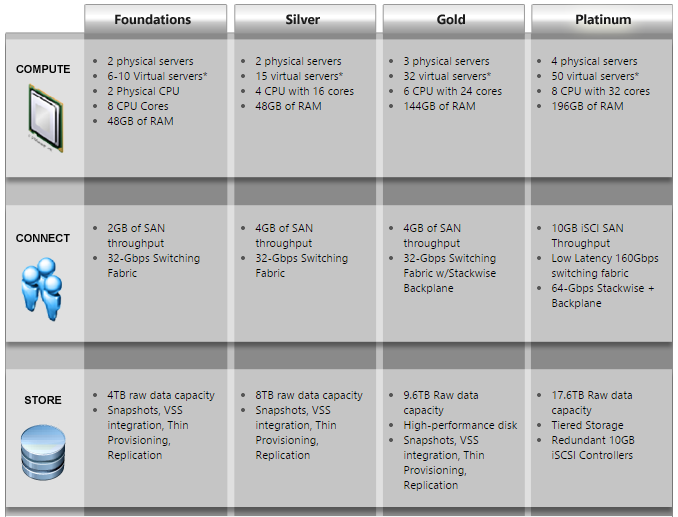 ActiveCompute™ creates 3 distinct technology cells (Compute, Connect and Store) that integrate seamlessly together in a single virtual fabric. Separating the technology stack into three distinct and fully redundant cells allows non-disruptive elastic scalability and the flexibility to apply firmware and software upgrades to all components with near-zero downtime. If you need more computing resources such as RAM or CPU, simply add an additional physical server. If you need to add more storage adding an additional EqualLogic array couldn’t be easier. 99.999% uptime has never been more affordable and easier to manage.