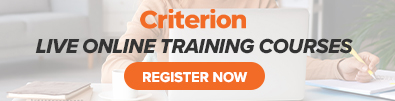 Visit the Criterion training center for all your Criterion training needs, including HR, Payroll, Crystal Reports, Employee Self Service, Year End, and more. Hands-on, instructor-led courses will teach you how to use your applications to be more efficient and drive effectiveness in your department.